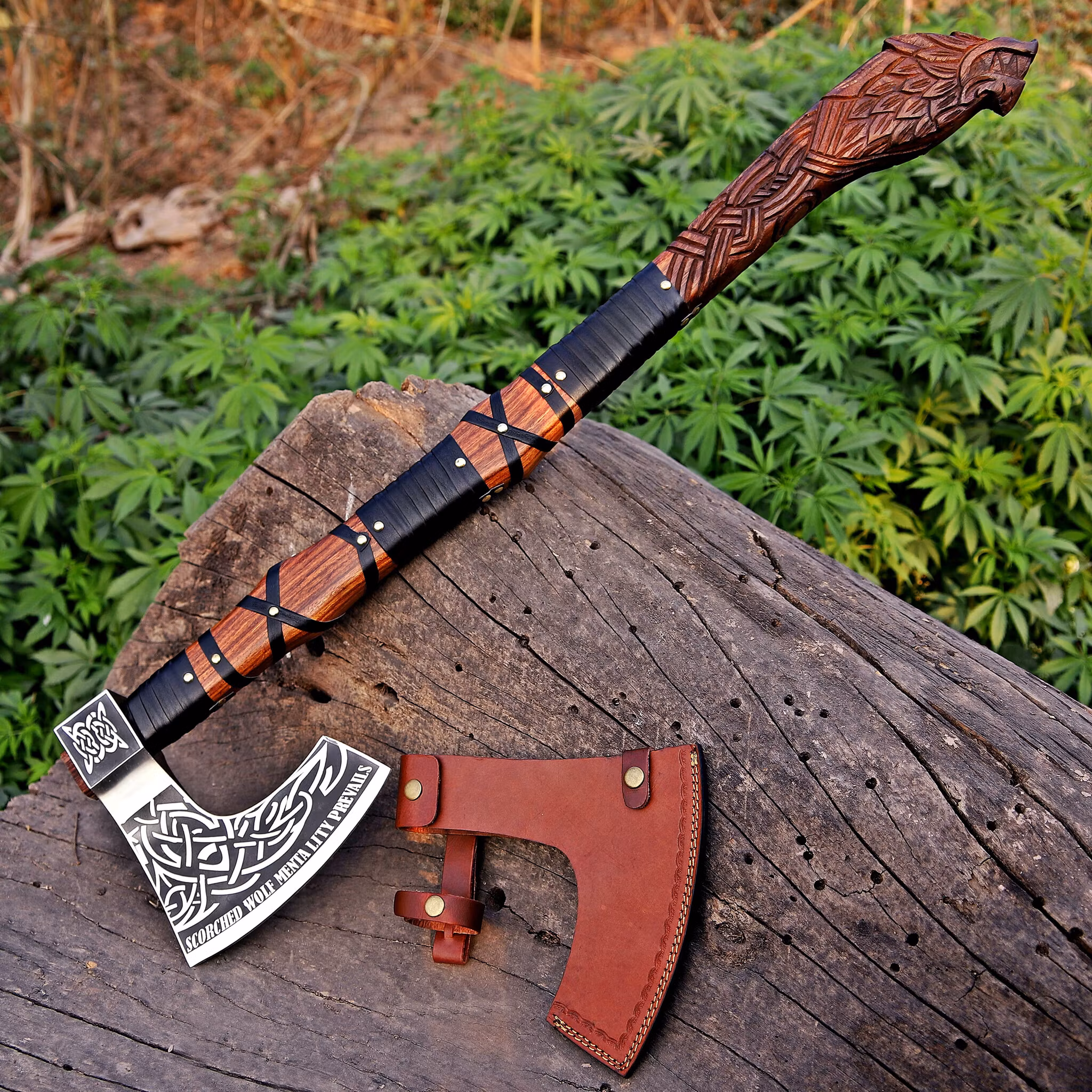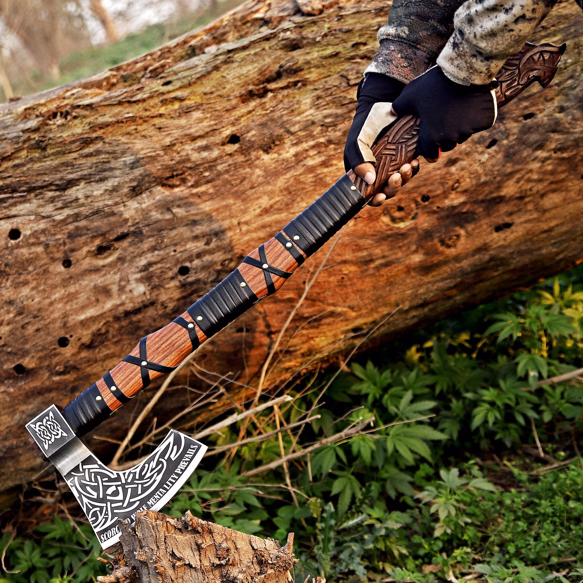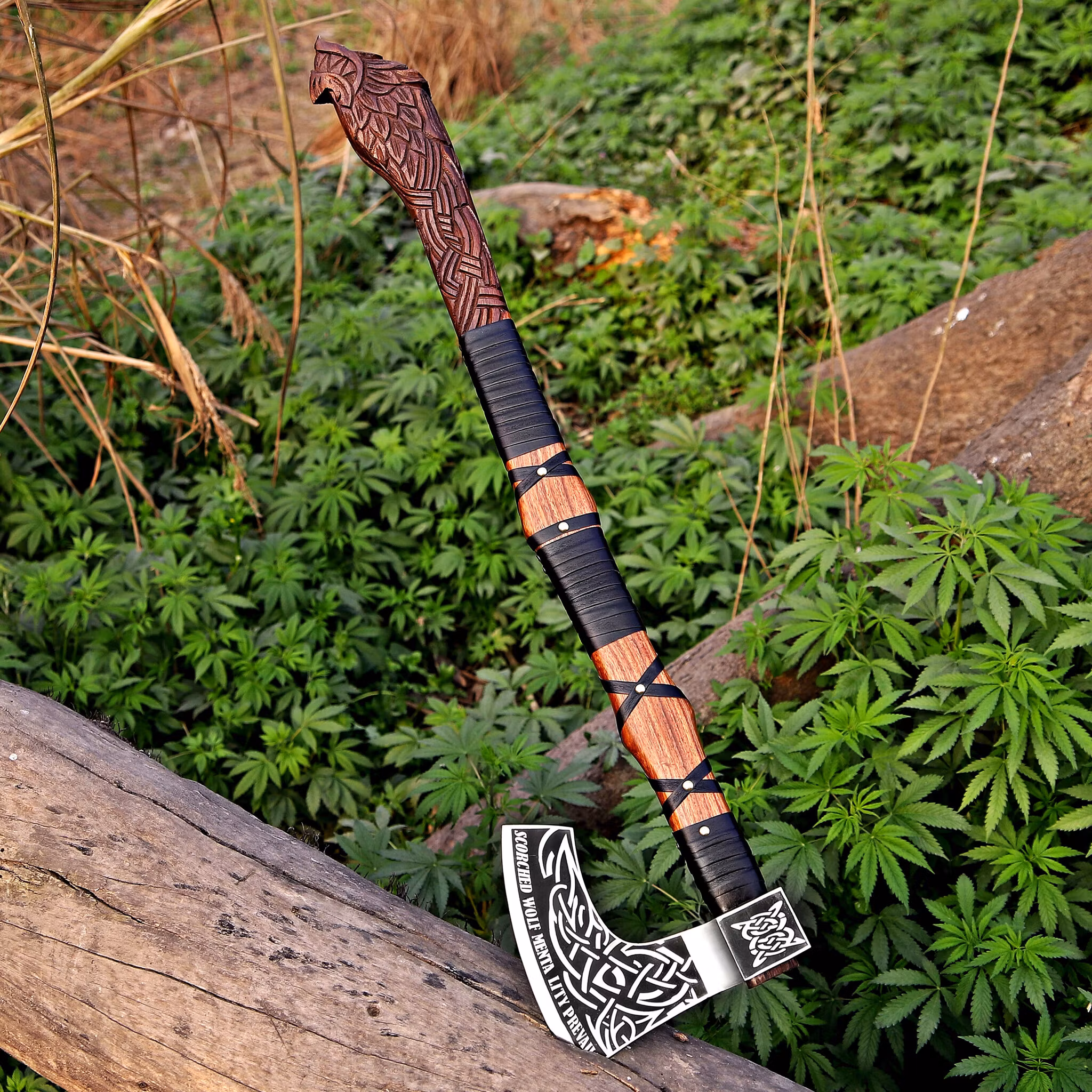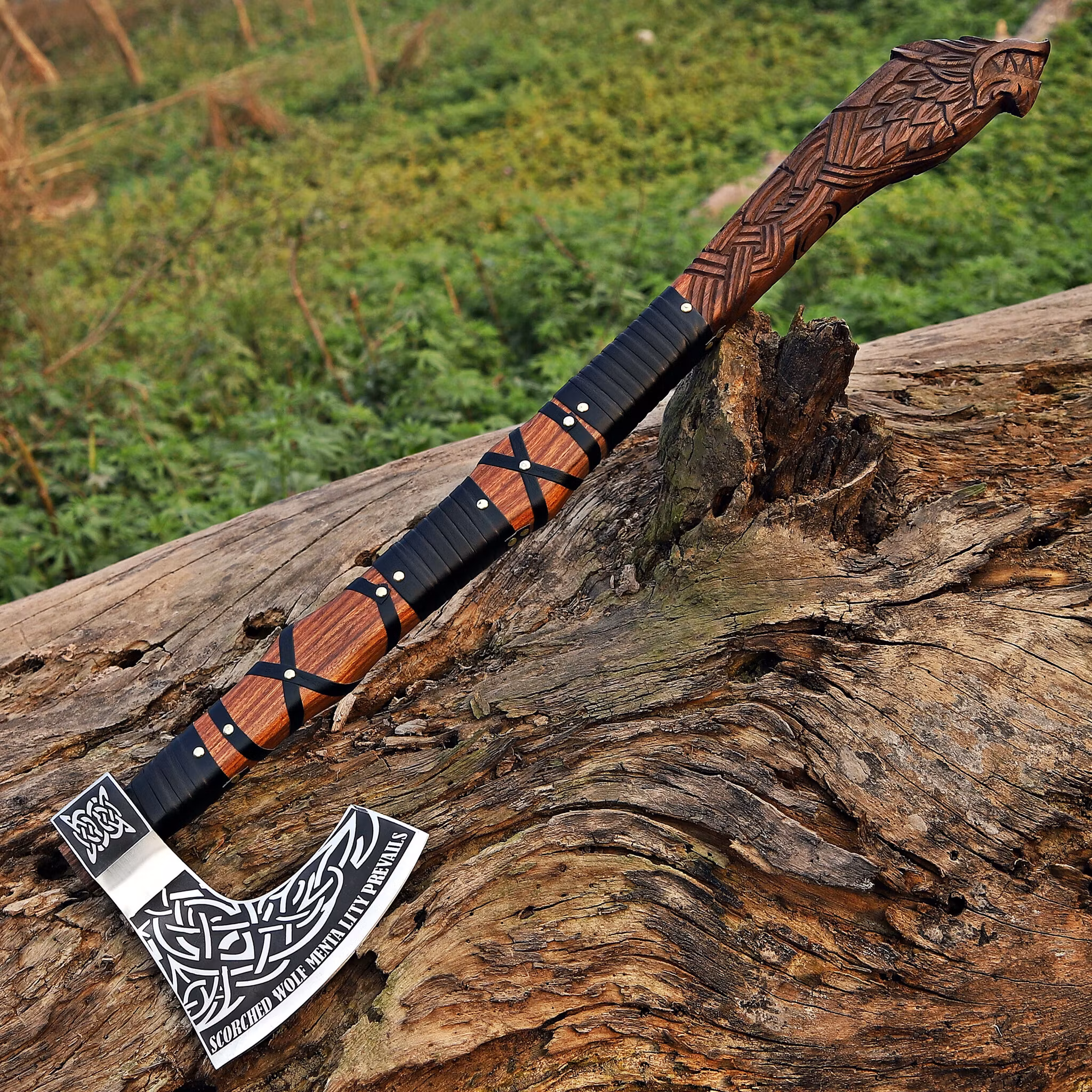 Design: Dekorert med Fenrisulv-graveringer, et norrønt symbol på styrke og motstandskraft.